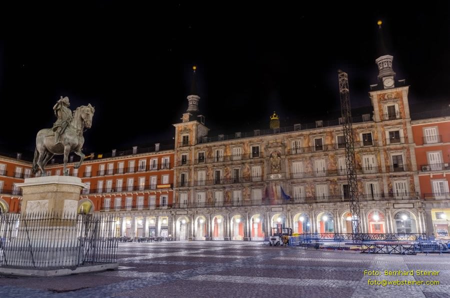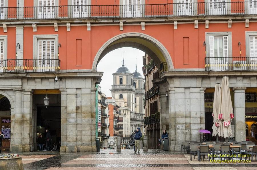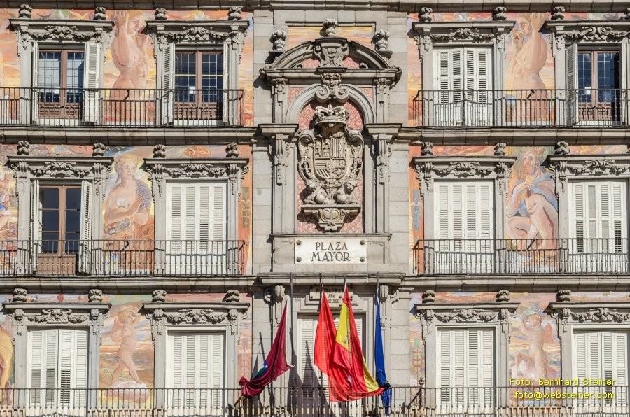 Die Plaza Mayor (Hauptplatz) befindet sich im Zentrum der spanischen Hauptstadt. Es handelt sich um einen rechteckigen Platz (129 Meter lang und 94 Meter breit), der komplett mit viergeschossigen Wohngebäuden umgeben ist. Diese weisen insgesamt 237 Balkone auf, die sich alle an der Platzseite befinden. Der Platz verfügt über neun Zugänge.