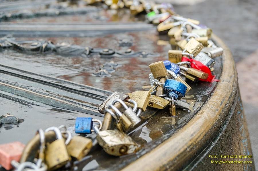 Hier sind zwar kaum Möglichkeiten zur Anbringung von Liebesschlössern vorhanden, liebestolle Menschen finden trotzdem einen Weg.