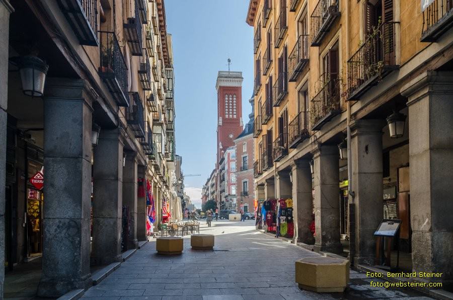 Blick durch den südlichen Zugang in die Calle de Toledo zur Iglesia de San Isidro (Real Colegiata de San Isidro y Nuestra Señora del Buen Consejo).