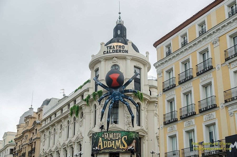 Am Teatro Calderon spielt es gerade 'La Familia Addams' und erfreut uns mit einer überdimensionalen Araña, die sich sanft im Wind bewegt. Brrrr!