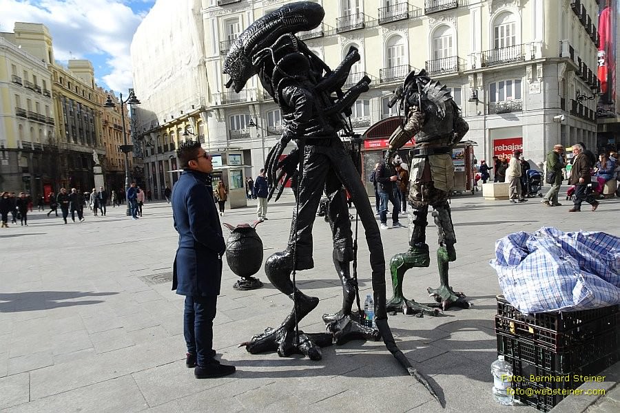 'El oso y el madroño', 'der Bär und der Erdbeerbaum' - das ist das Wahrzeichen Madrids! Es steht auf dem zenralen Platz 'Puerta del Sol' zwischen den Strassen Alcalá und Carrera de San Jerónimo. Daher ist sie ein beliebter Treffpunkt der Einwohner Madrids und eine der am meisten fotografierten Touristenattraktionen.