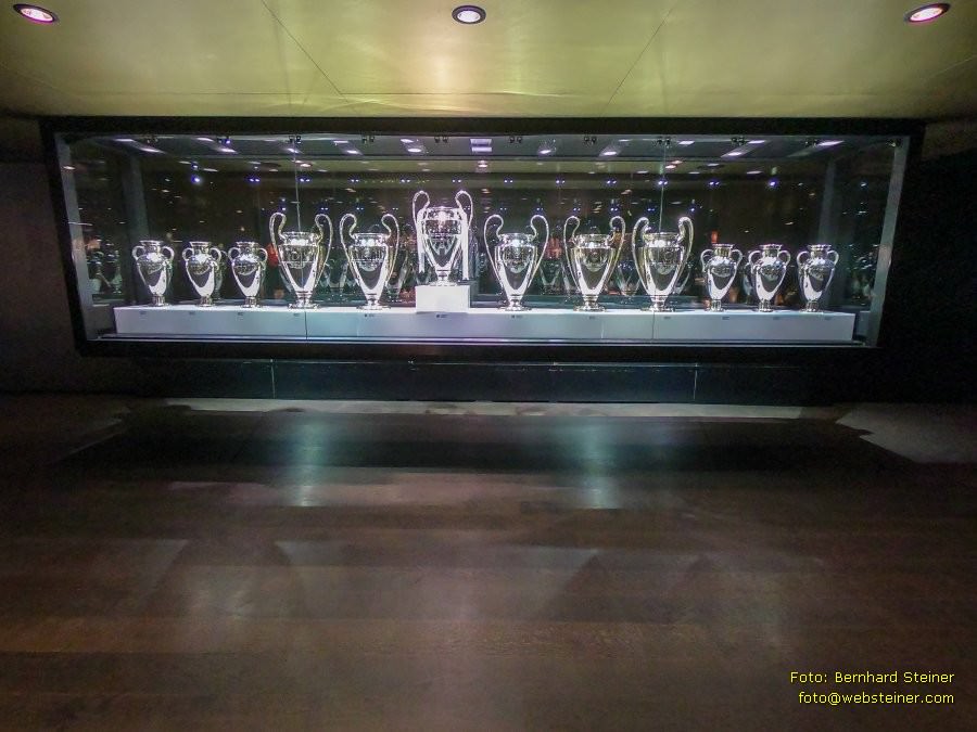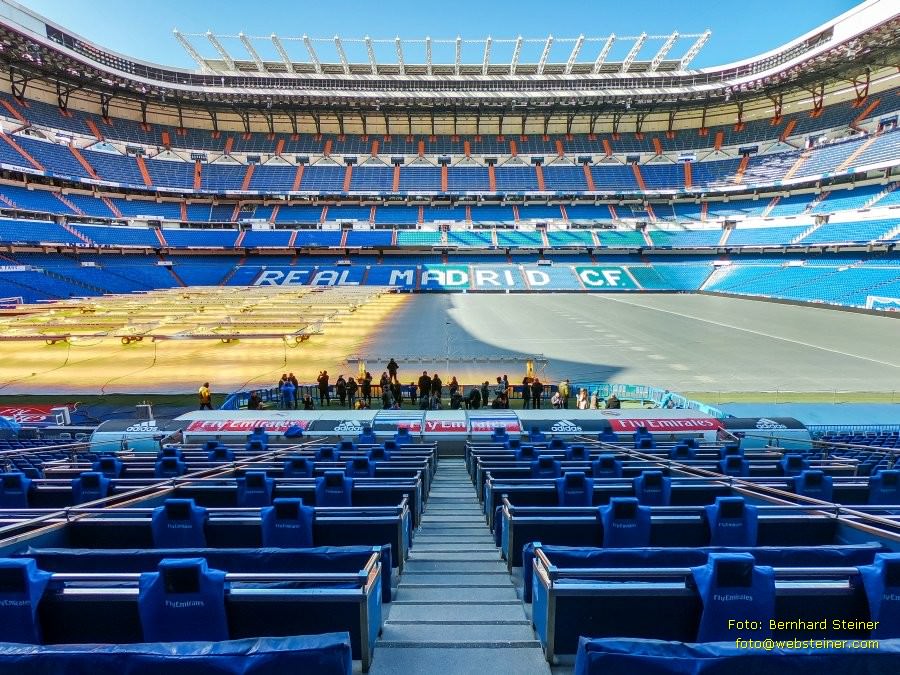 Das Santiago Bernabéu Stadium ist das Fußballstadion von Real Madrid mit 81.000 Plätzen, regelmäßigen Spielen, Stadionführungen und Trophäenraum. Es wurde nach dem langjährigen Präsidenten Santiago Bernabéu (1895 - 1978) benannt. Um flockige EUR 25,- (Kinderticket EUR 18,-) kann man die Stadiontour im eigenen Tempo machen.