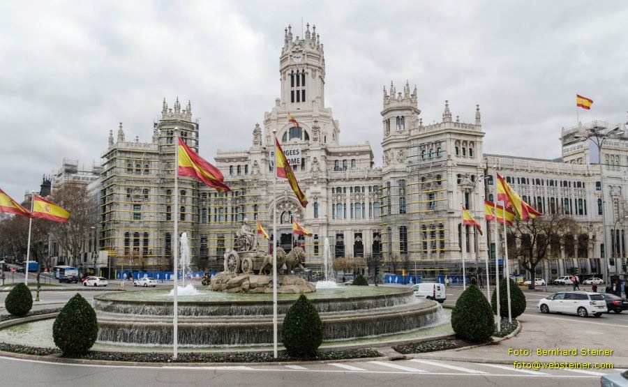 Die Plaza de Cibeles ist ein verkehrsreicher Platz und befindet sich an der Kreuzung der Straßen Calle Alcalá, Paseo de Recoletos und Paseo del Prado. Es ist ein Platz mit Ansichtskartencharakter für die spanische Hauptstadt.