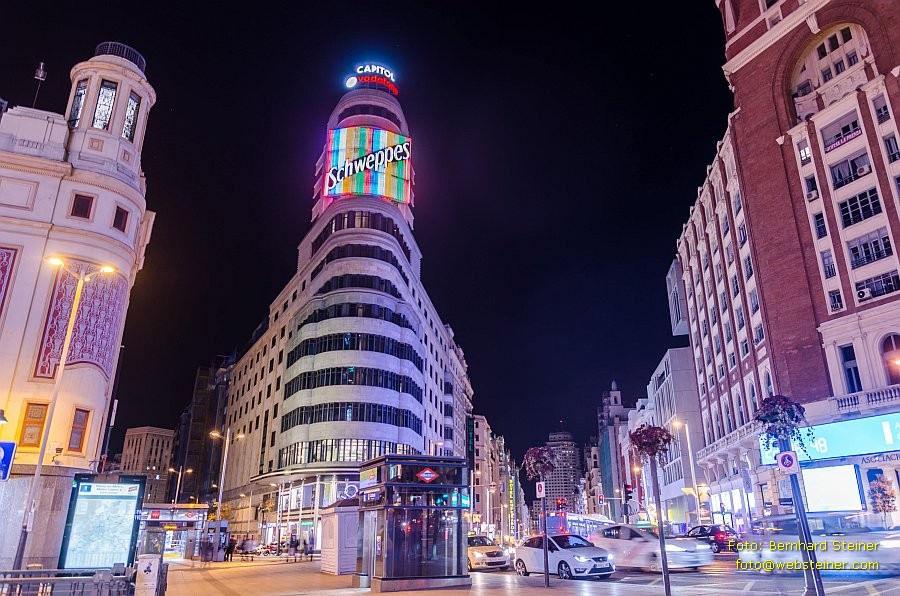 Das Edificio Carrión (Edificio Capitol) ist an der Gran Vía 41. Das Gebäude von 1933 an der Plaza del Callao ist für sein buntes Werbeschild bekannt.