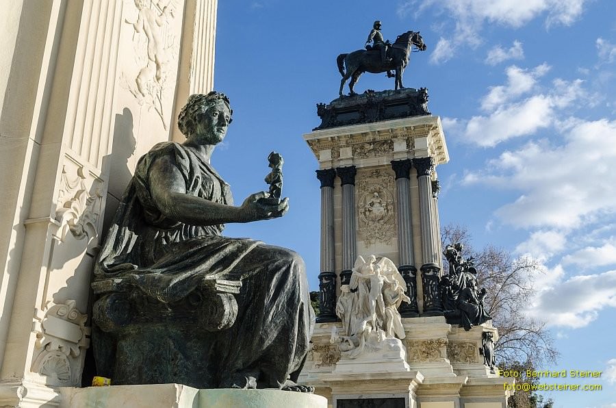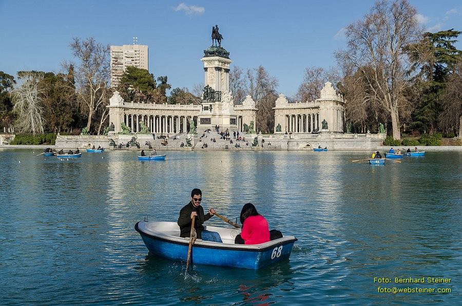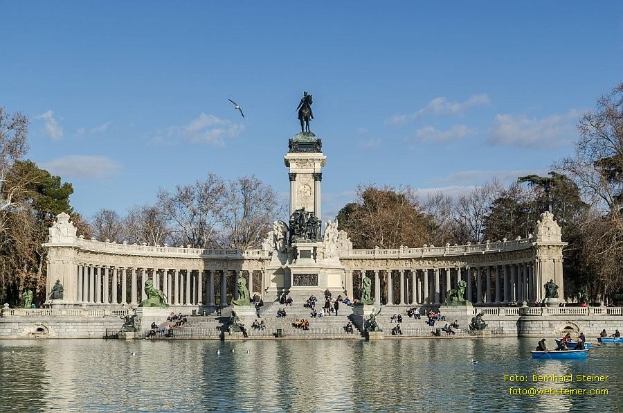 Am Ostrand des künstlichen Sees Estanque Grande del Retiro wurde das Monument für König Alfons XII. von Spanien in Form eines Nationaldenkmals errichtet. Inmitten einer halbkreisförmigen Säulenhalle an der Anlegestelle erhebt sich auf hohem Piedestal das Reiterstandbild des Königs, umgeben von allegorischen Figuren des Lebens und Schaffens in Frieden und Freiheit. Im Juni 1922 fertiggestellt, wurde es zum Wahrzeichen des Parks.