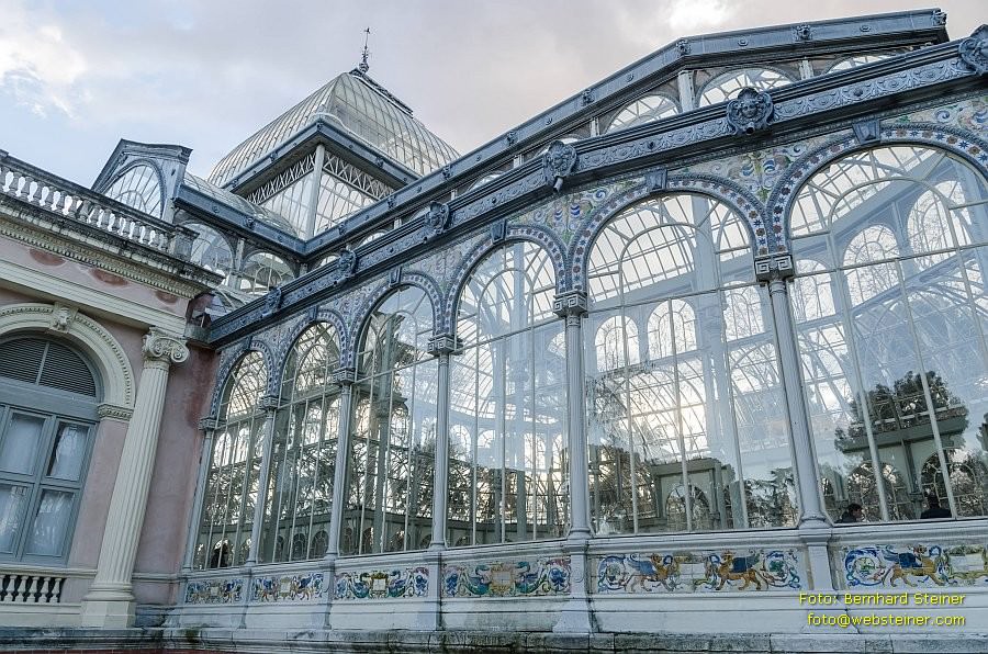 Der Palacio de Cristal besteht fast nur aus Glas, das in einem Rahmen aus Eisen gefasst und mit Keramik dekoriert ist. Zur Zeit der Erbauung war Glas in der Architektur ein faszinierendes neues Material, das für Modernität und Fortschritt stand.