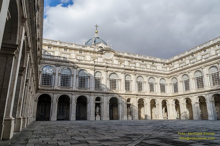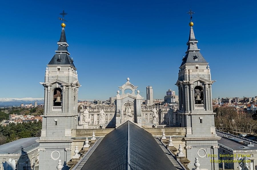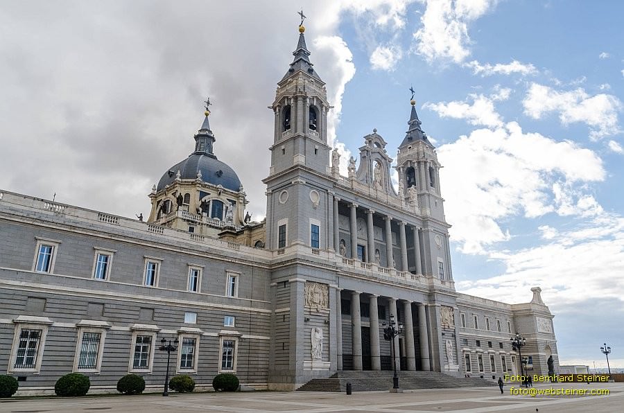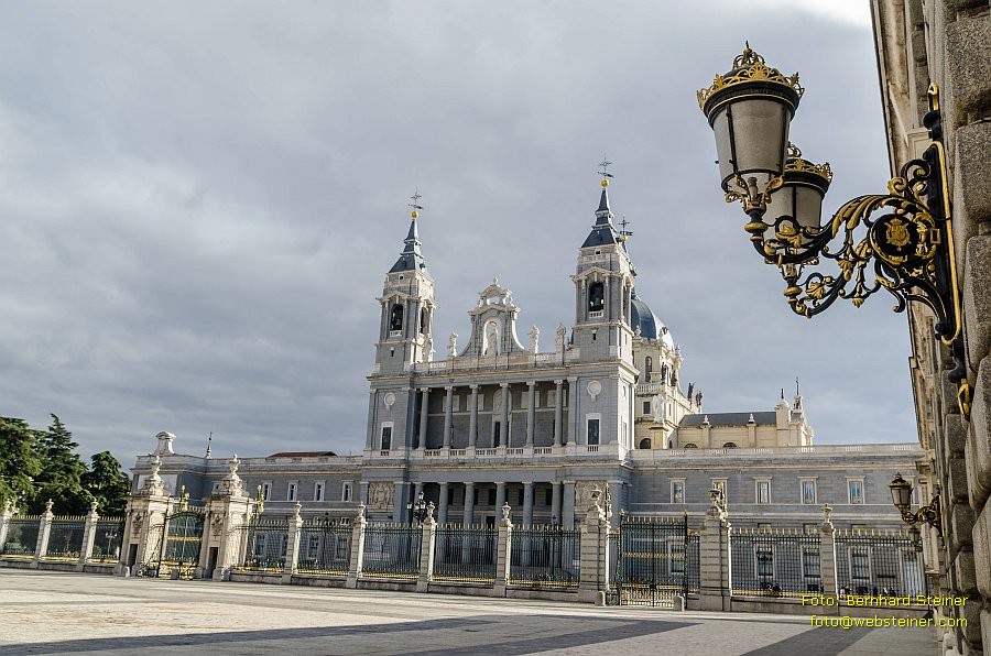 Aufmerksamen Beobachtern wird nicht entgehen, dass gegenüber vom Palacio Real am Plaza de la Armería die Catedral de Santa María la Real de la Almudena herüberlockt.