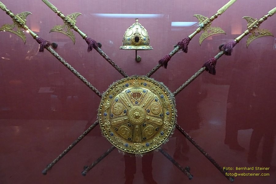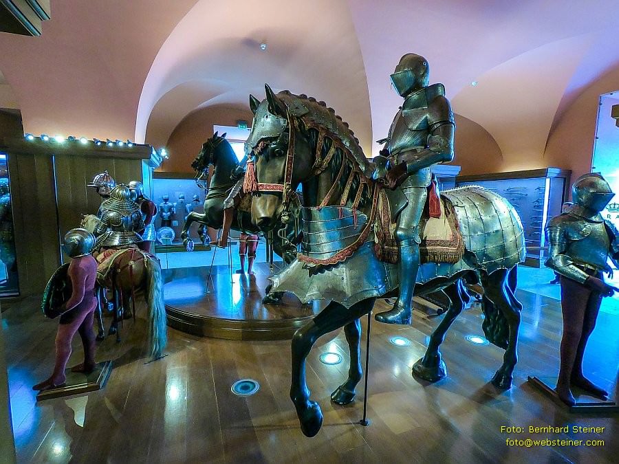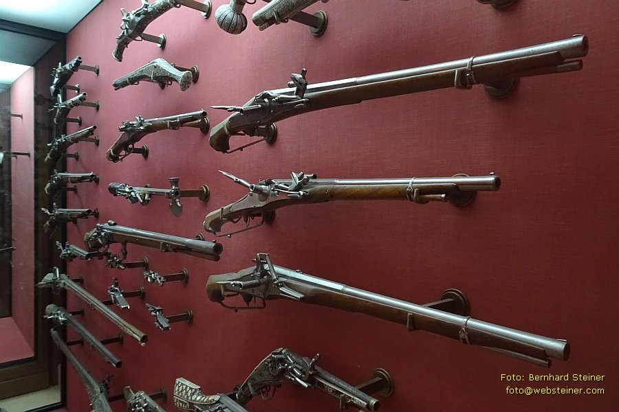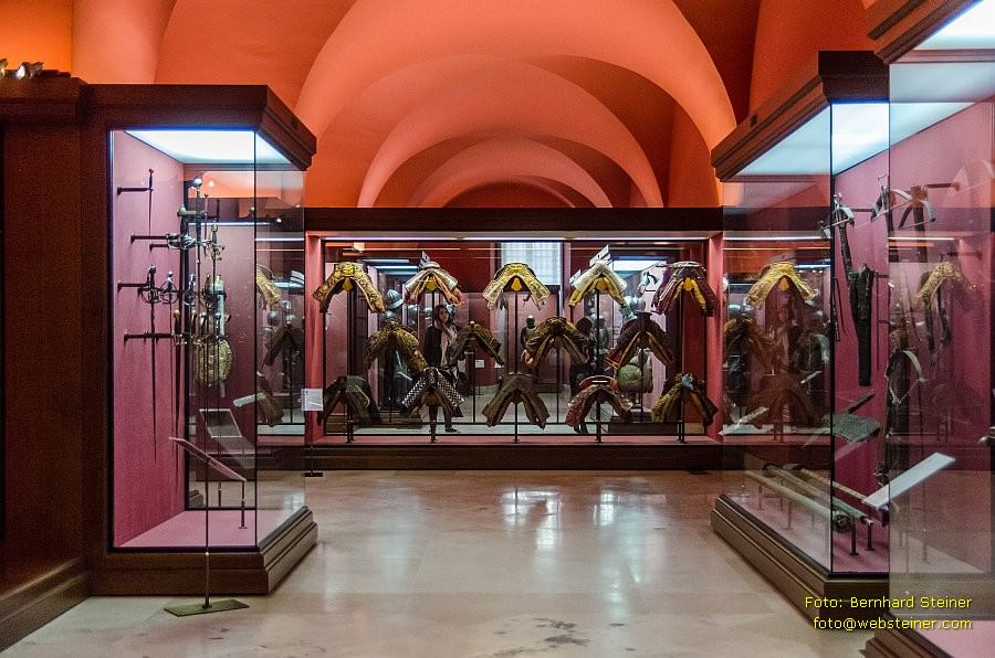 Das königliche Arsenal von Madrid befindet sich im Seitenflügel und gilt neben der Kaiserlichen Rüstkammer von Wien und Turin als eine der besten Waffensammlungen der Welt.