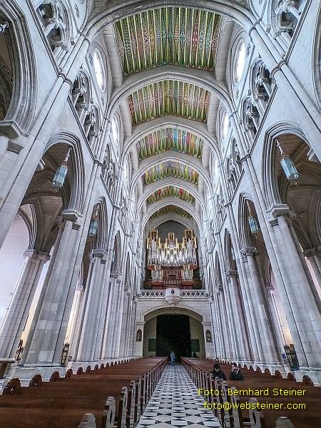 Die Kathedrale ist in Form eines lateinischen Kreuzes errichtet, bestehend aus dem zentralen Mittelschiff, flankiert von zwei Seitenschiffen, das sich in den Chorraum fortsetzt, der von einem Chorumgang umgeben wird, an den sich ein Kranz von fünf Kapellen anschließt. Im Gegensatz zur äußeren Erscheinung, die durch neoklassische und barocke Stilelemente beherrscht wird, ist der Innenraum maßgebend im neugotischen Stil errichtet. Auch ein Großteil der Ausstattung ist neugotisch.
