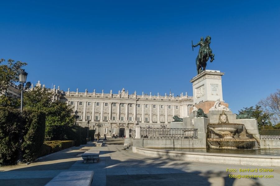 Zwischen Palacio Real (an dieser Seite ist angeblich die 'Real Cocina de su Majestad', aber verköstigt wurde ich nicht) und dem Teatro Real ist der Plaza de Oriente mit einem Monument von Felipe IV.