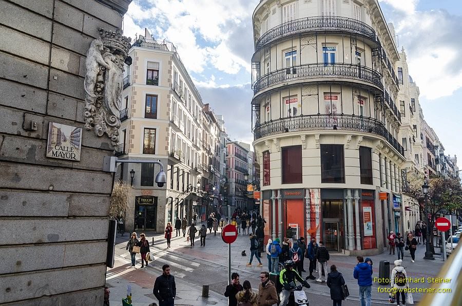 Blick aus Richtung Puerta del Sol auf der Calle Mayor in die Calle Postas.