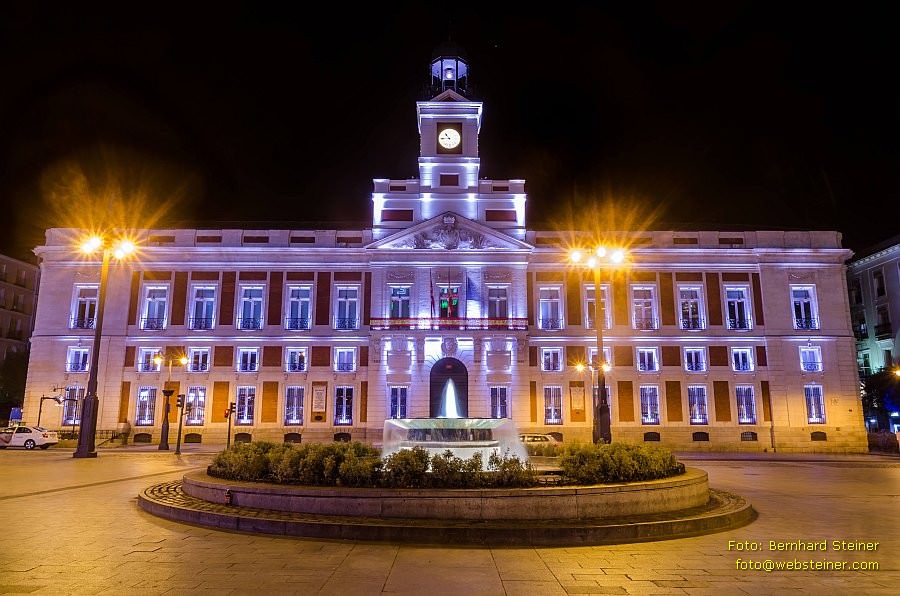 Das Uhrtürmchen stammt aus dem 19. Jahrhundert und die Uhr war ein Geschenk des Uhrmachers Losada. Jedes Jahr am 31. Dezember begleiten die Gongschläge dieser Uhr die Madrider und, dank der Fernsehübertragung, auch ganz Spanien, bei dem Jahreswechsel. Früher beherbergte das Gebäude das Innenministerium (Ministerio de la Gobernación). Jetzt ist das Gebäude Sitz der Regierung der Autonomen Gemeinschaft Madrids.