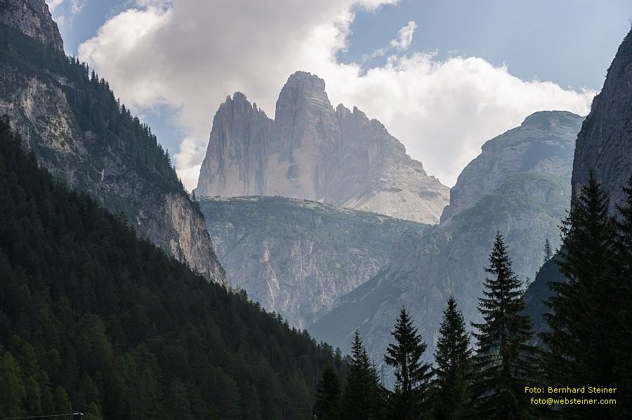 Von Bruneck 37 km entfernt kommt man zum Aussichtspunkt zum bekanntesten Teil der Dolomiten: Drei Zinnen.