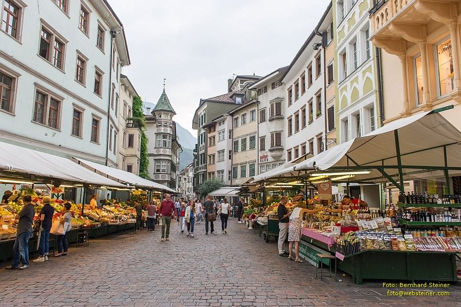 Obstplatz (Piazza Erbe) ist eine der Hauptadern der Altstadt, urkundlich erstmals 1220 erwähnt. Bis 1919 'Obstmarkt', dann 'Piazza Erbe'.