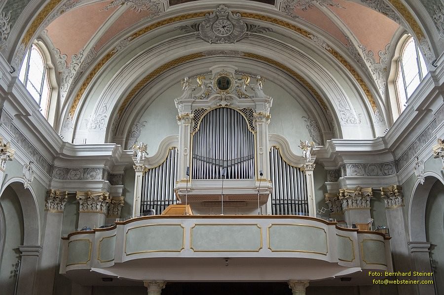 An der Brüstung der Orgelempore sind in vertieften Feldern eingelassene Ölgemälde, wahrscheinlich von Pußjäger, mit Szenen aus dem Leben des heiligen Nikolaus. Die Orgel selbst wurde 1973 von Georg Hradetzky aus Krems hergestellt.