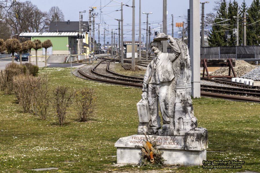 Passend vor dem 'Traun OÖ Bahnhof' steht der grüßende