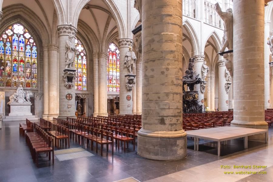 Neben Wandmalereien (1435), zahlreichen Kunstwerken, Kirchenfenstern und der Orgel umfasst das Gebäude mehrere Kapellen, wie zB. jene der Militärgilden, von Saint-Maclou (1690) oder noch von Thurn und Taxis (L. Faydherbe, 1651).