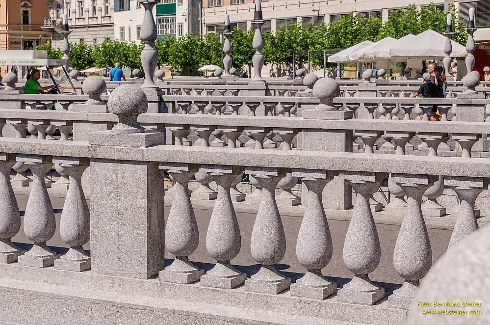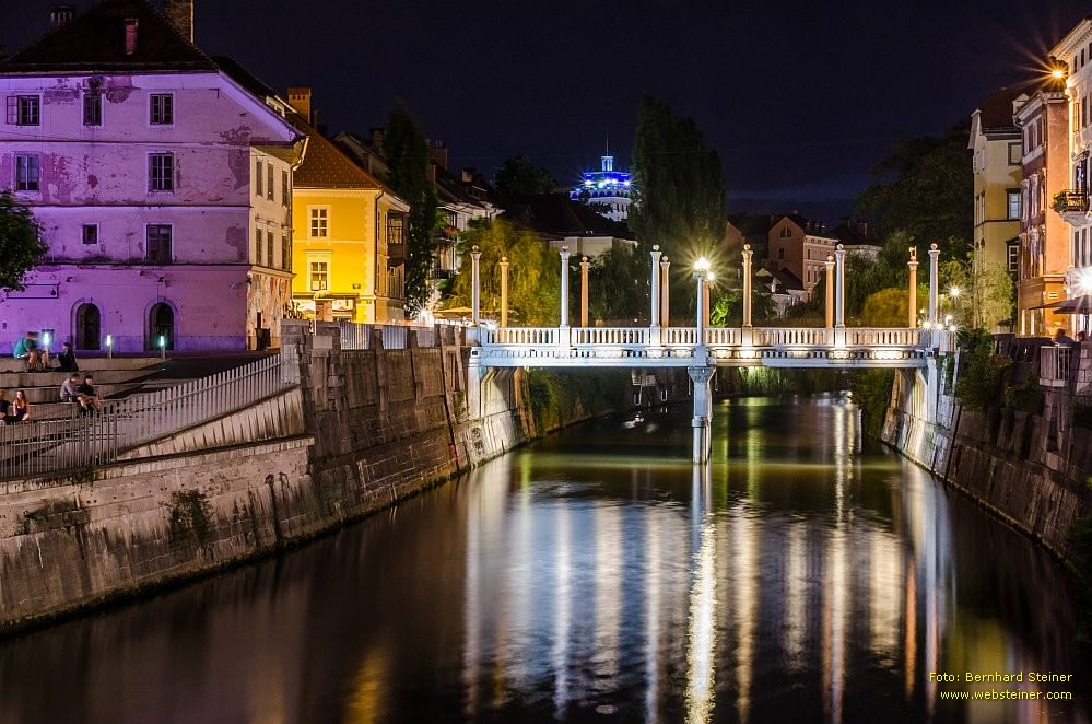 Tromostovje (Drei Brücken) ist eines der Wahrzeichen von Ljubljana. Die erste Erwähnung einer hölzernen Brücke über die Ljubljanica an dieser Stelle datiert um 1280. Die Holzbrücke musste 1657 nach einem Feuer erneut errichtet werden und wurde 1842 durch eine Steinbrücke ersetzt, die von Giovanni Picco, einem italienischen Architekten, entworfen wurde.