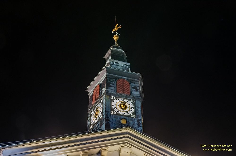 Das Türmchen am Rathaus (Mestna hisa oder Rotovz) auf dem Mestni trg, dem Stadtplatz in der Altstadt.