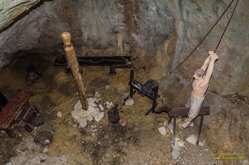 Die diffizile Burgtreppe in der Felsenfestung Predjama, über die schon Jackie Chan schmerzlich gestürzt ist (Filmtitel: Armour of God - Der rechte Arm der Götter, 1986).
