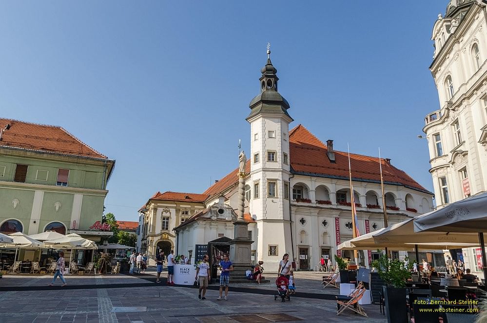 Der Rathausplatz mit Rathaus gilt als das Zentrum von Maribor. Auf dem Hauptplatz (Glavni trg) finden, wie auf vielen großen Plätzen von Maribor, an gewissen Wochentagen spezielle Märkte statt. Das spätgotische Rathaus mit dem Zwiebelturm stammt aus dem 16. Jahrhundert.