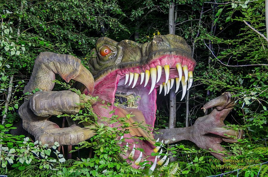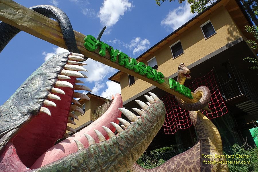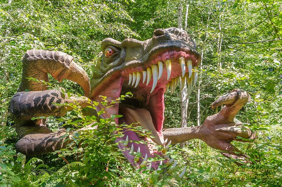 Am Gelände bei Bad Gleichenberg begegnet man Mammut, Säbelzahntiger, Raubkatze, Riesenhirsch, Höhlenbär und natürlich Tyrannosaurus Rex und vielen anderen Dinosauriern hautnah und lebensgroß.