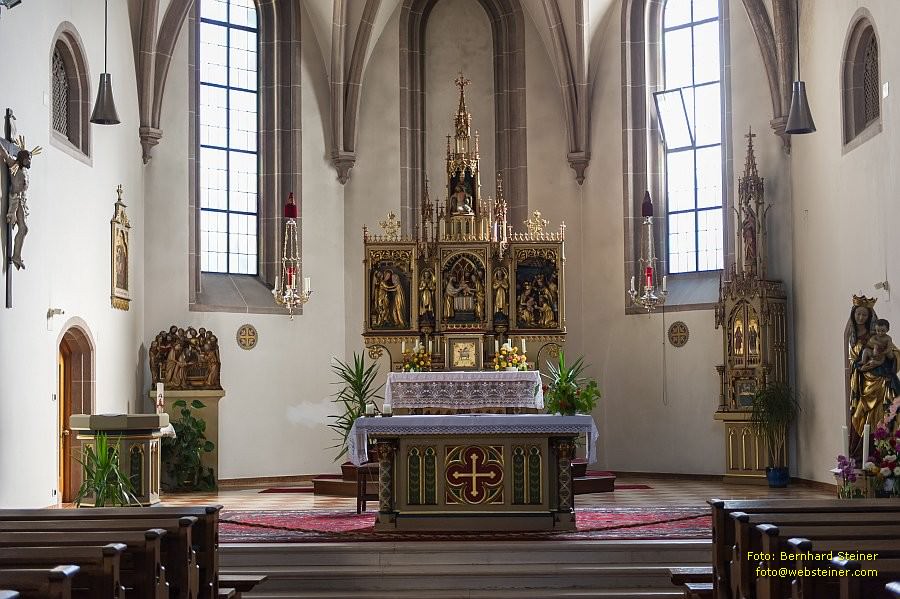 Chorraum mit Hochaltar in der Meraner Stadtpfarrkirche Sankt Nikolaus.