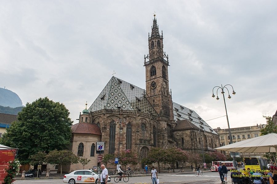 Die erste Pfarrkirche Maria Himmelfahrt von Bozen wurde nach den Angaben der sog. 'Bozner Chronik', einer annalistischen Aufzeichnung des 14. Jahrhunderts, im Jahr 1180 geweiht und war im romanischen Stil errichtet. Hundert Jahre später wurde mit dem Neubau der Kirche im spätgotischen Stil begonnen. Dieser Neubau wurde 1519 mit der Errichtung des spätgotischen Turms abgeschlossen.