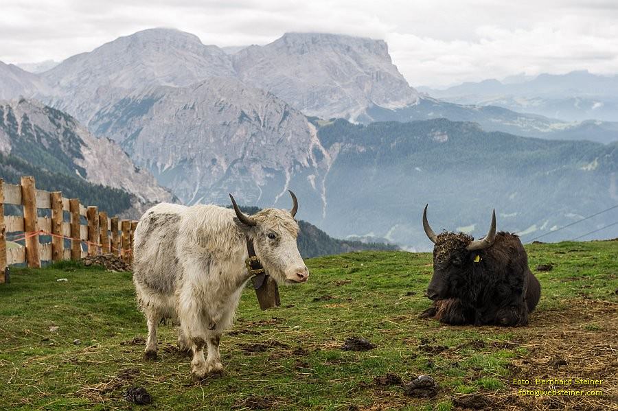 Die Corones-Yak-Hochlandrinder von Gastronom Andy Piok werden am Gipfelplateau von Bergbauer Peter Hochwieser versorgt.