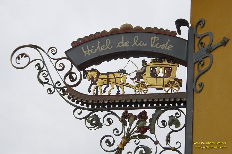 Das viersternige Hotel de la Poste von 1811 steht auf den Trümmern der Kirche Santa Caterina am Hauptplatz.