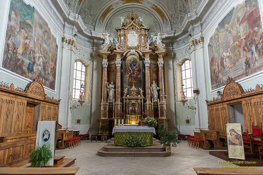 Die Stadtpfarrkirche wurde von den Bürgern der Stadt mit zahlreichen Zuwendungen bedacht und gehört daher zu den Kirchen mit den meisten Sitzplätzen im Alpenraum.
